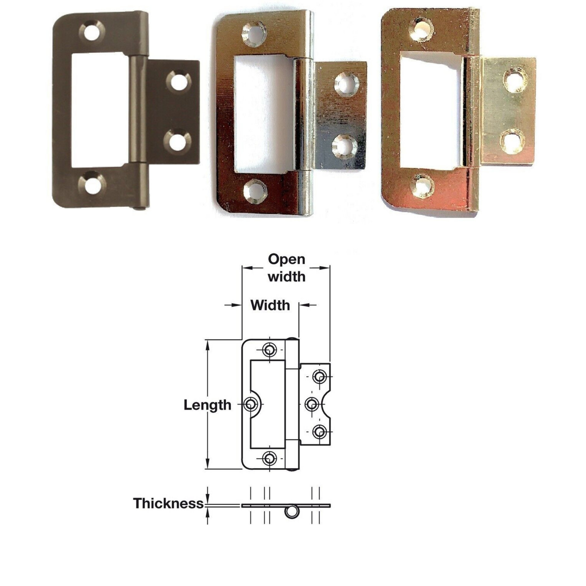 Flush Hinge, Steel, 50 x 24 mm, Chrome, Brass, Bronze