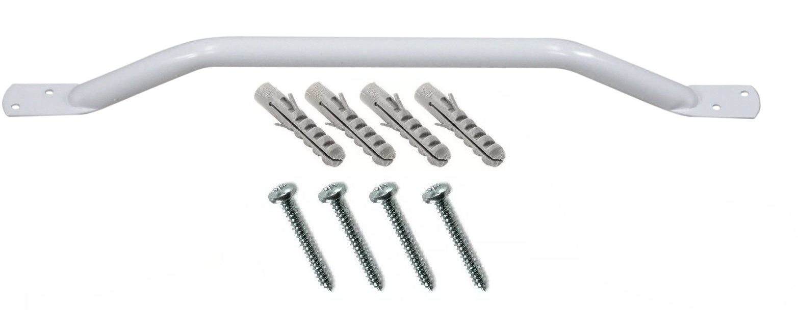 Grab Rail Handle Bar Indoor / Outdoor Steel Powder Coated Screw Fixings Included 600mm WHITE
