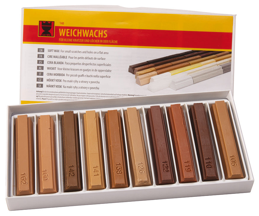 Hafele Soft Wax Filler Sticks, for Repair Work, 10 Assorted Oak Shades