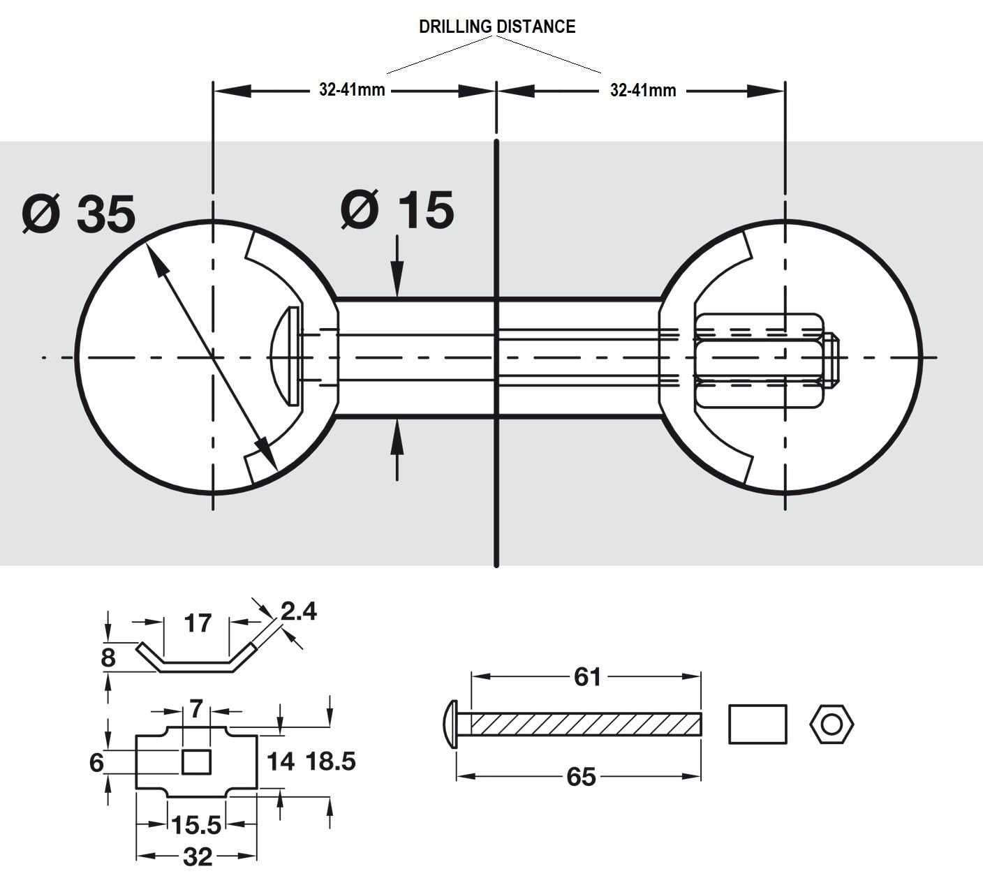 - Strong galvanised bolts 2 x Bolt for 65mm Installation 4 x Curved caps 2 x Tightening nut